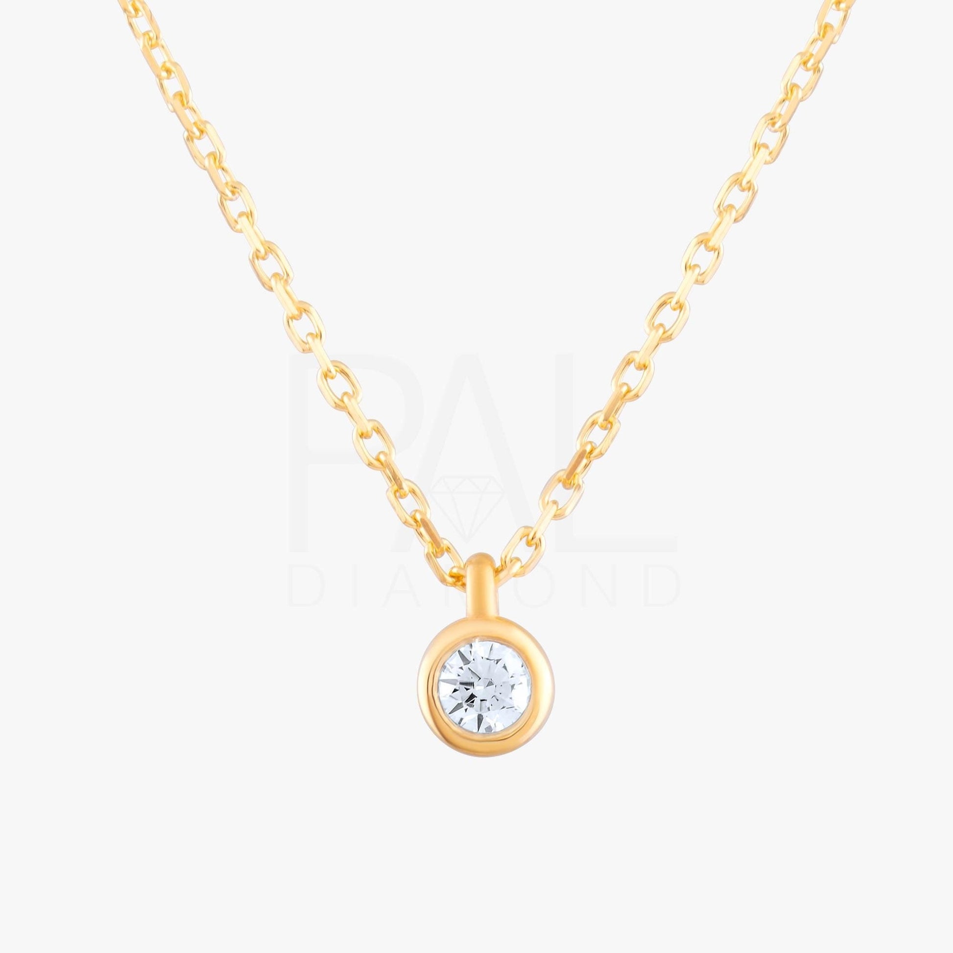 Ideal for bridal wear or as a meaningful gift, this Bezel Setting Solitaire Necklace brings out the timeless sparkle of the solitaire diamond. Its minimalist design makes it versatile enough for everyday elegance or as a standout piece for special events.