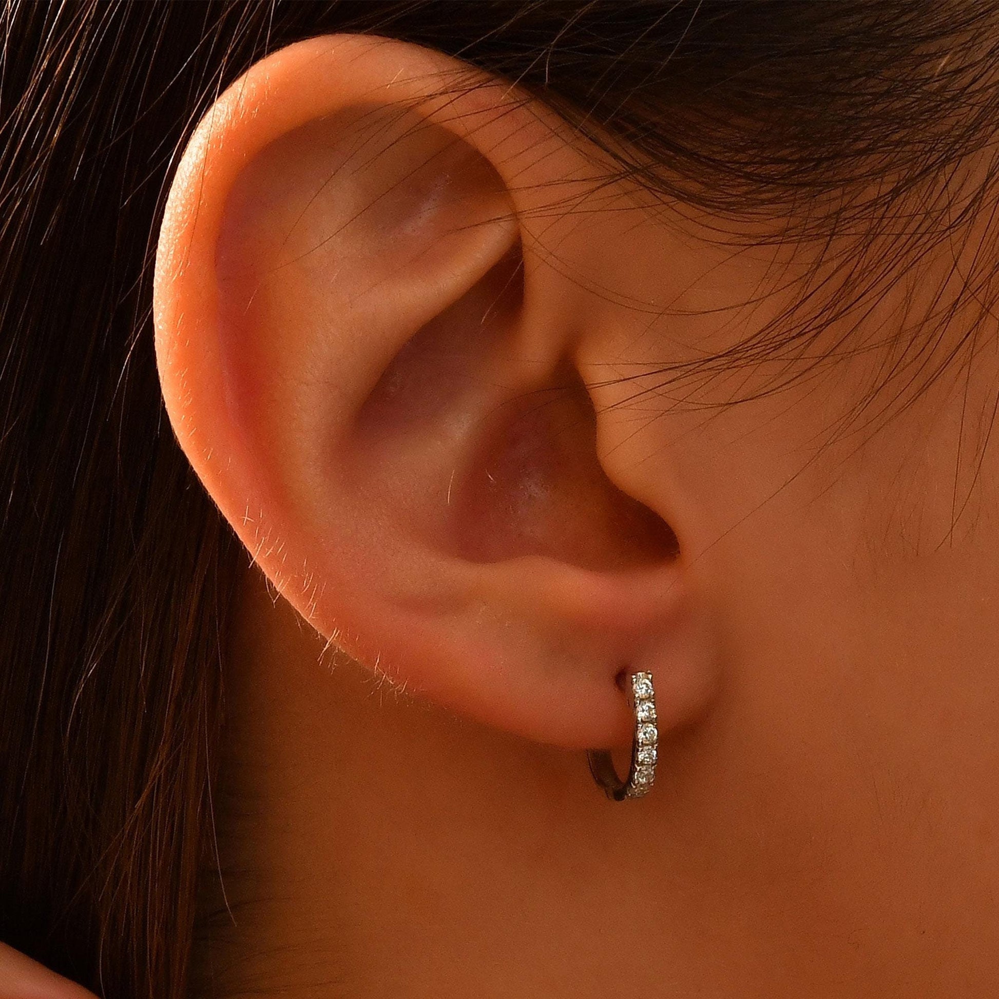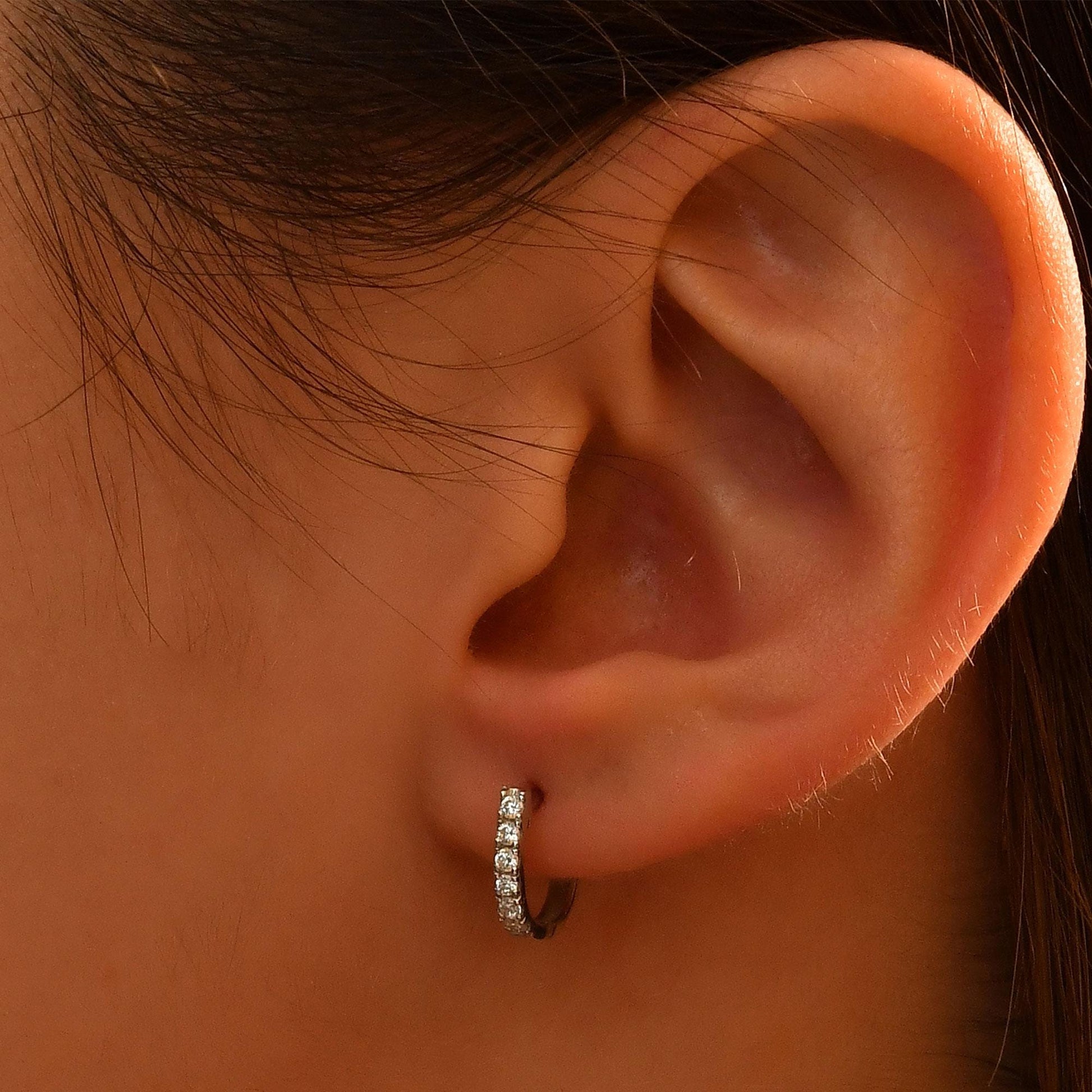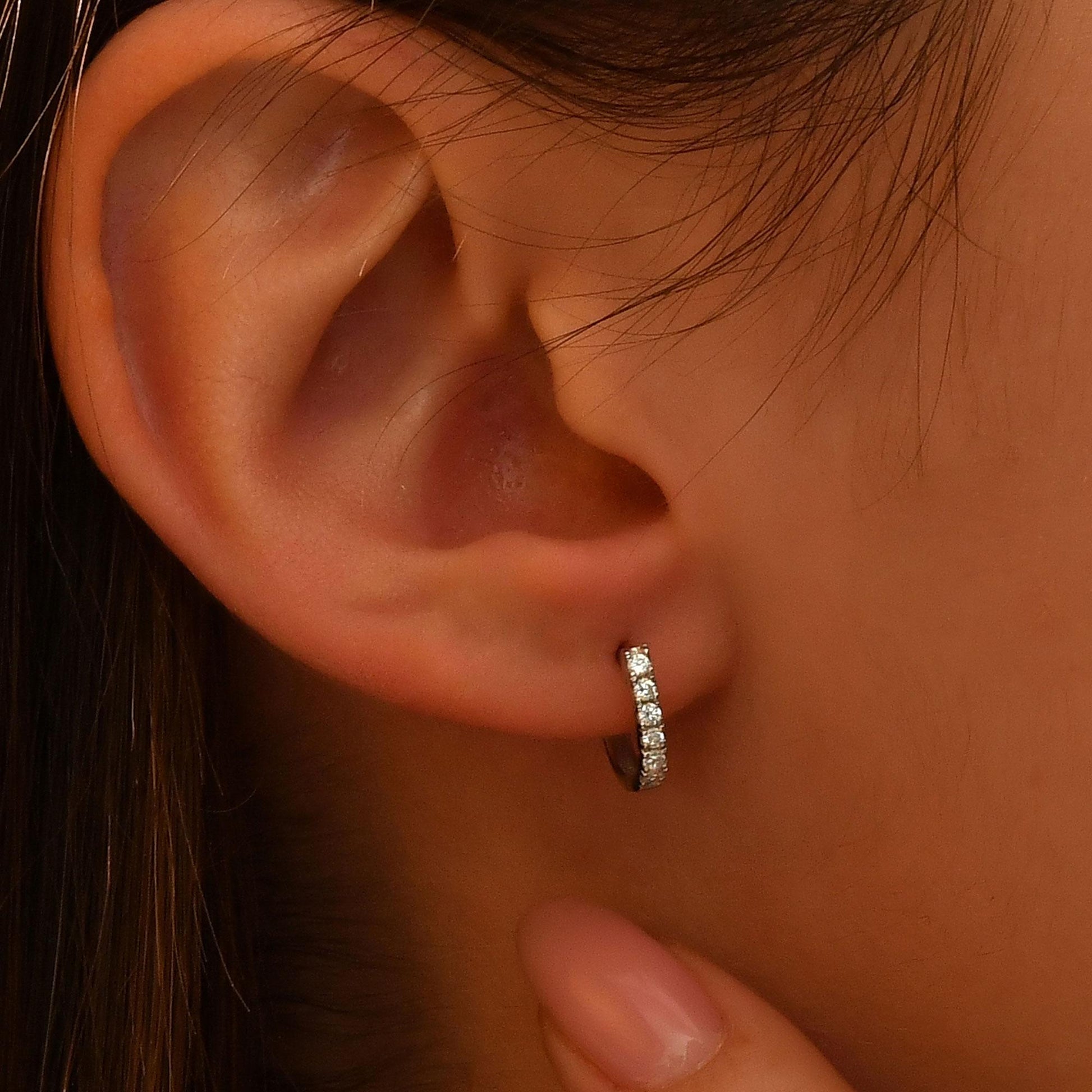 Introducing our exquisite Diamond Huggie Hoop Earrings the perfect blend of elegance and everyday luxury. Crafted in yellow gold, rose gold or white gold these huggie hoops are adorned with dazzling diamonds that catch the light with every movement. Their compact and comfortable design makes them an ideal choice for both casual wear and special occasions. Whether youre dressing up for a night out or adding a touch of sparkle to your everyday look, these diamond hoop earrings are a must-have in any jewelry collection. Elevate your style with the timeless beauty of these diamond huggie earrings!