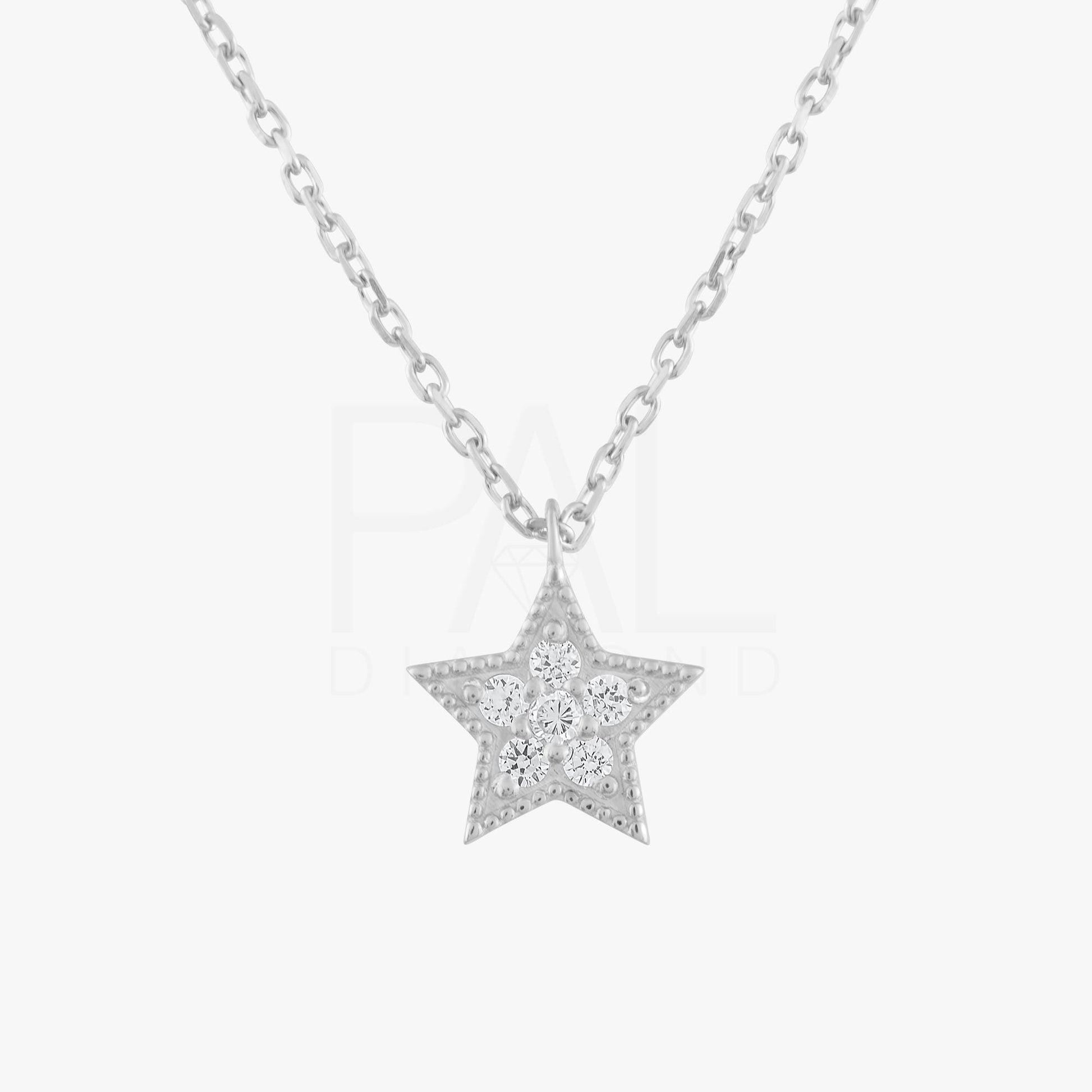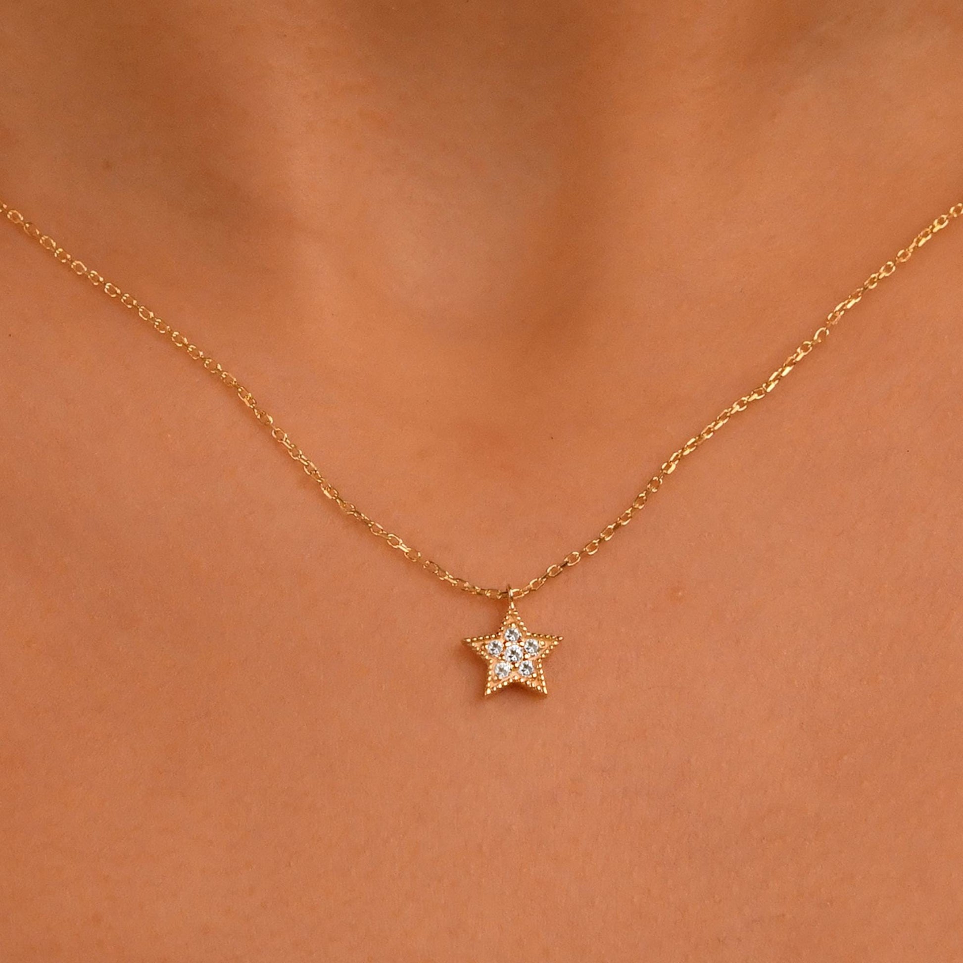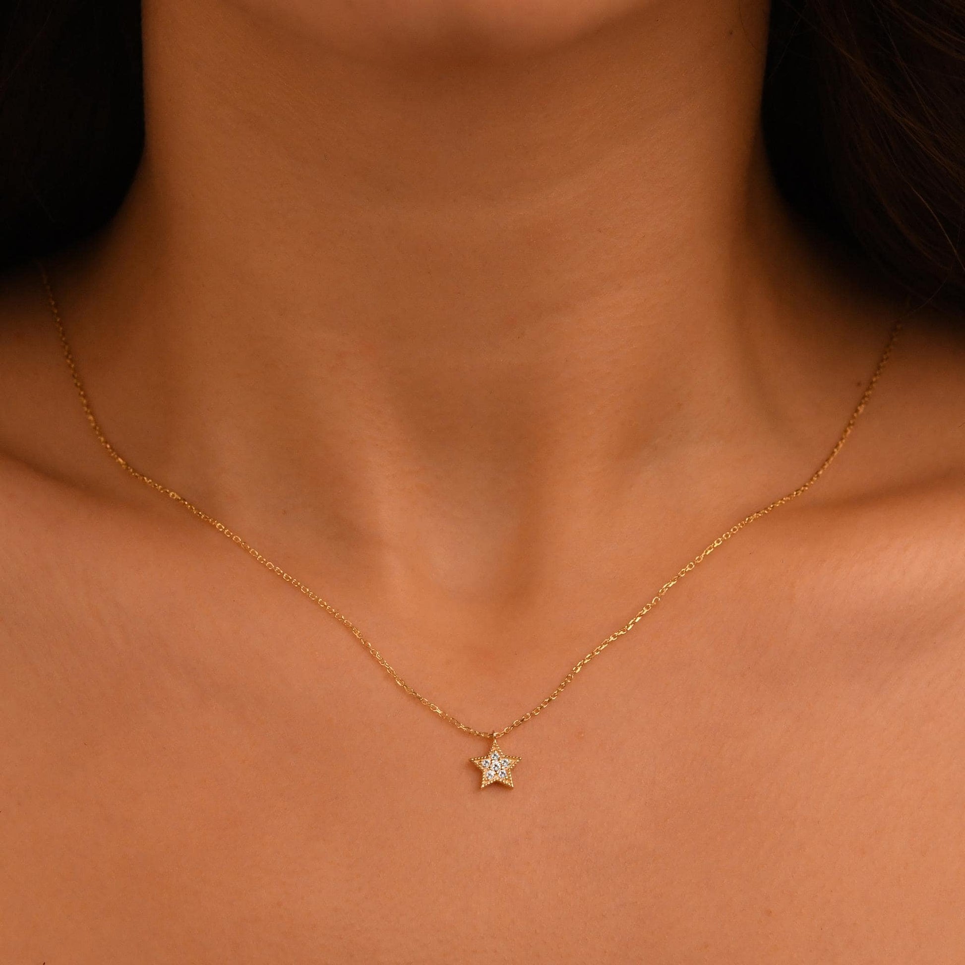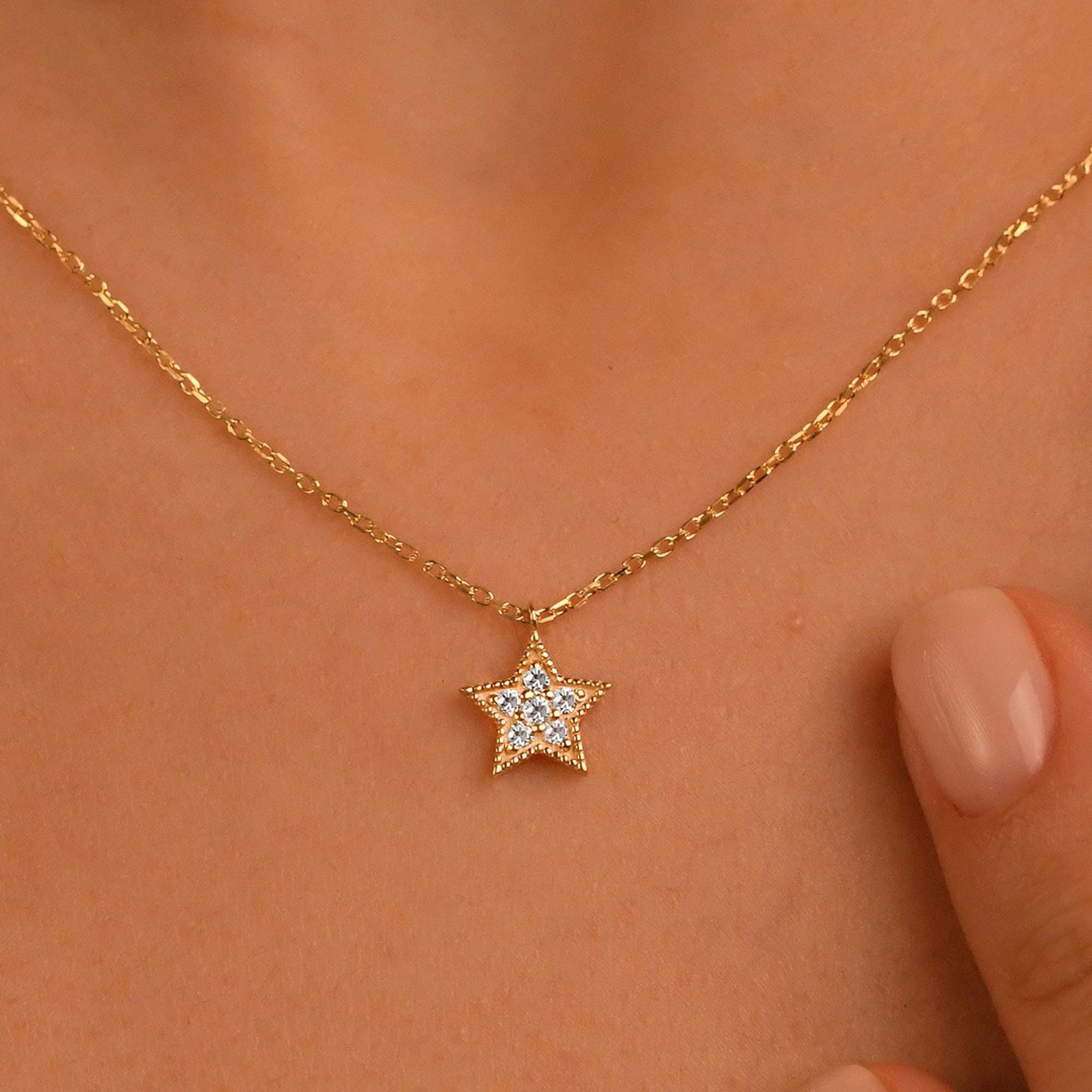 18k Diamond Star Necklace, 14k Gold Star Necklace, Diamond Star Charm Pendant, Solid Gold Diamond Celestial Necklace, Gift Diamond Necklace