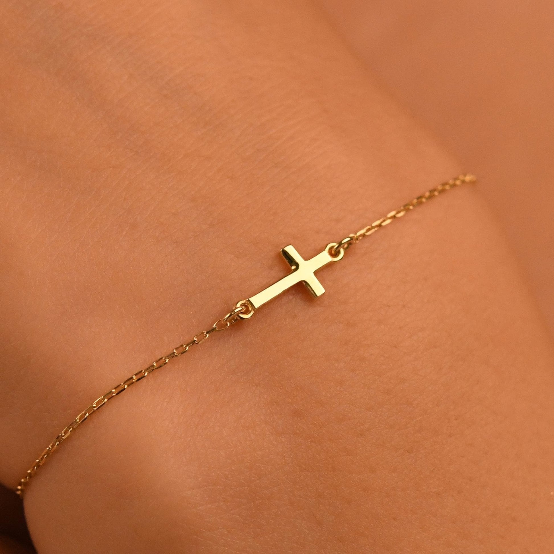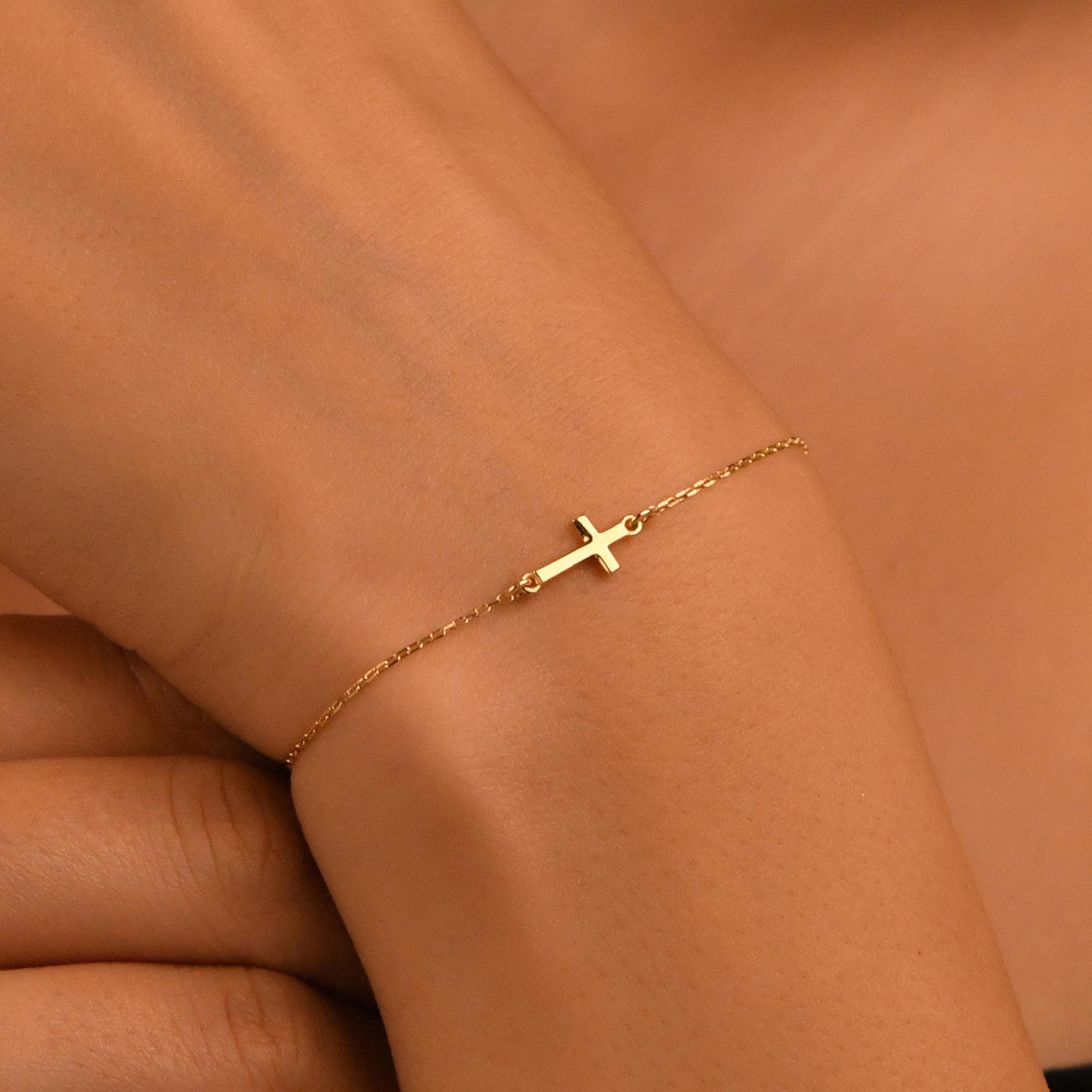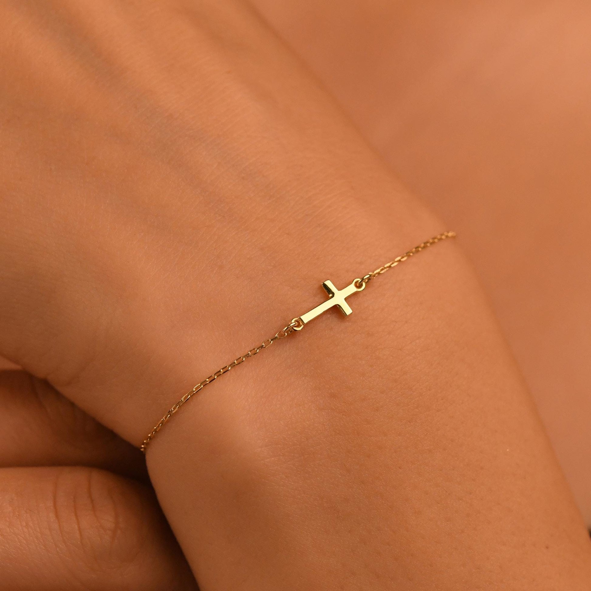 18k Gold Cross Bracelet, 14k Gold Cross Bracelet, Cross Bracelet for Women, Dainty Religious Bracelet, Cross Jewelry, Christian Bracelet