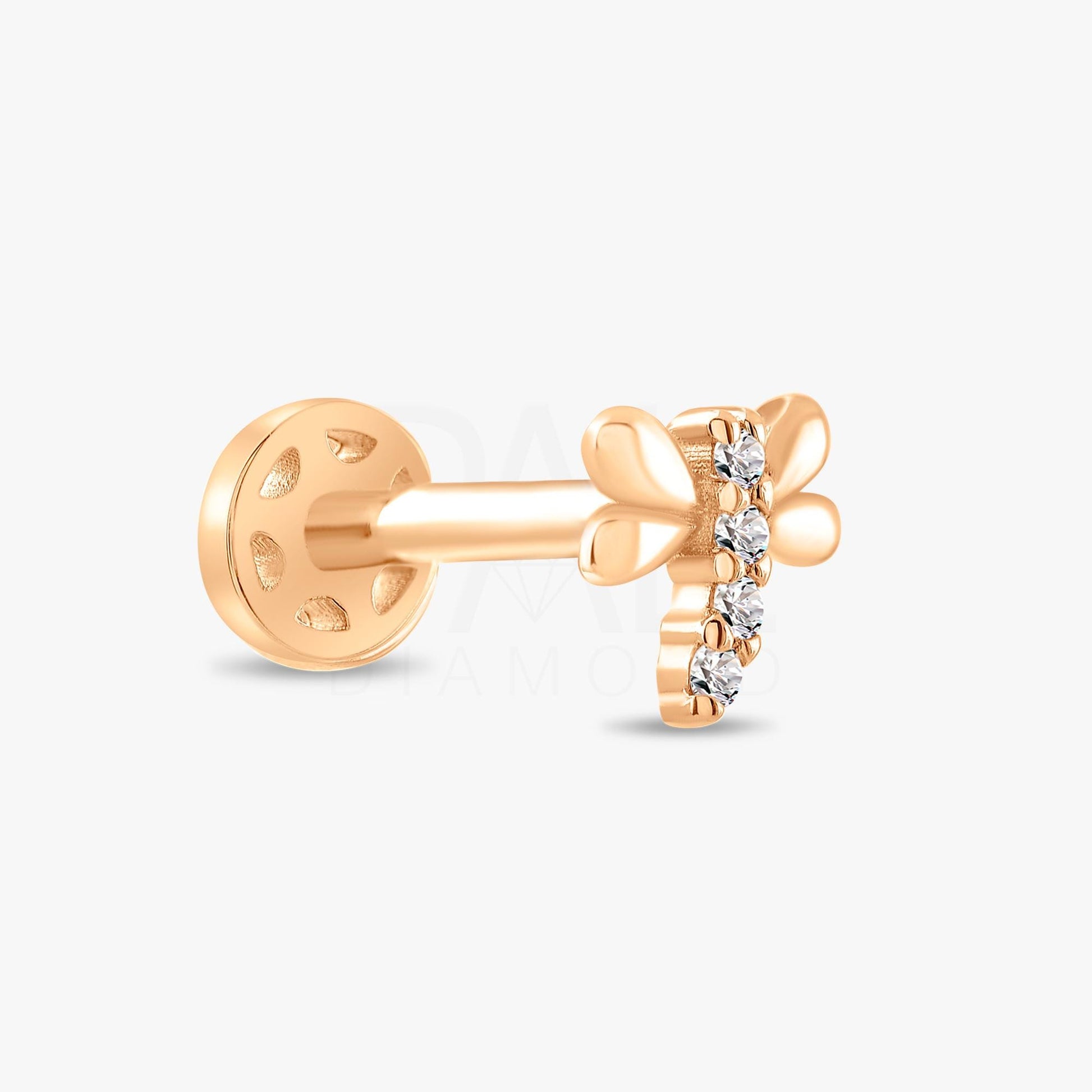 18K Solid Gold Diamond Dragonfly Tragus Piercing