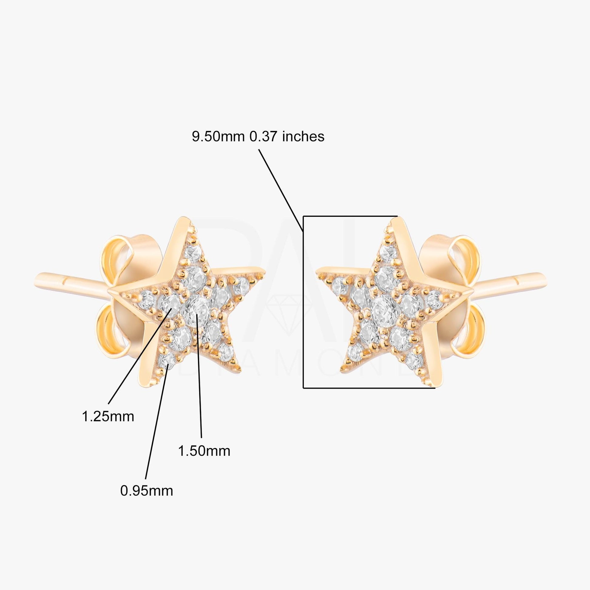 18k Solid Gold Diamond Star Earrings, 14k Solid Gold Mini Star Stud Earrings, Mini Gold Star Earrings, Natural Diamond Star Earrings