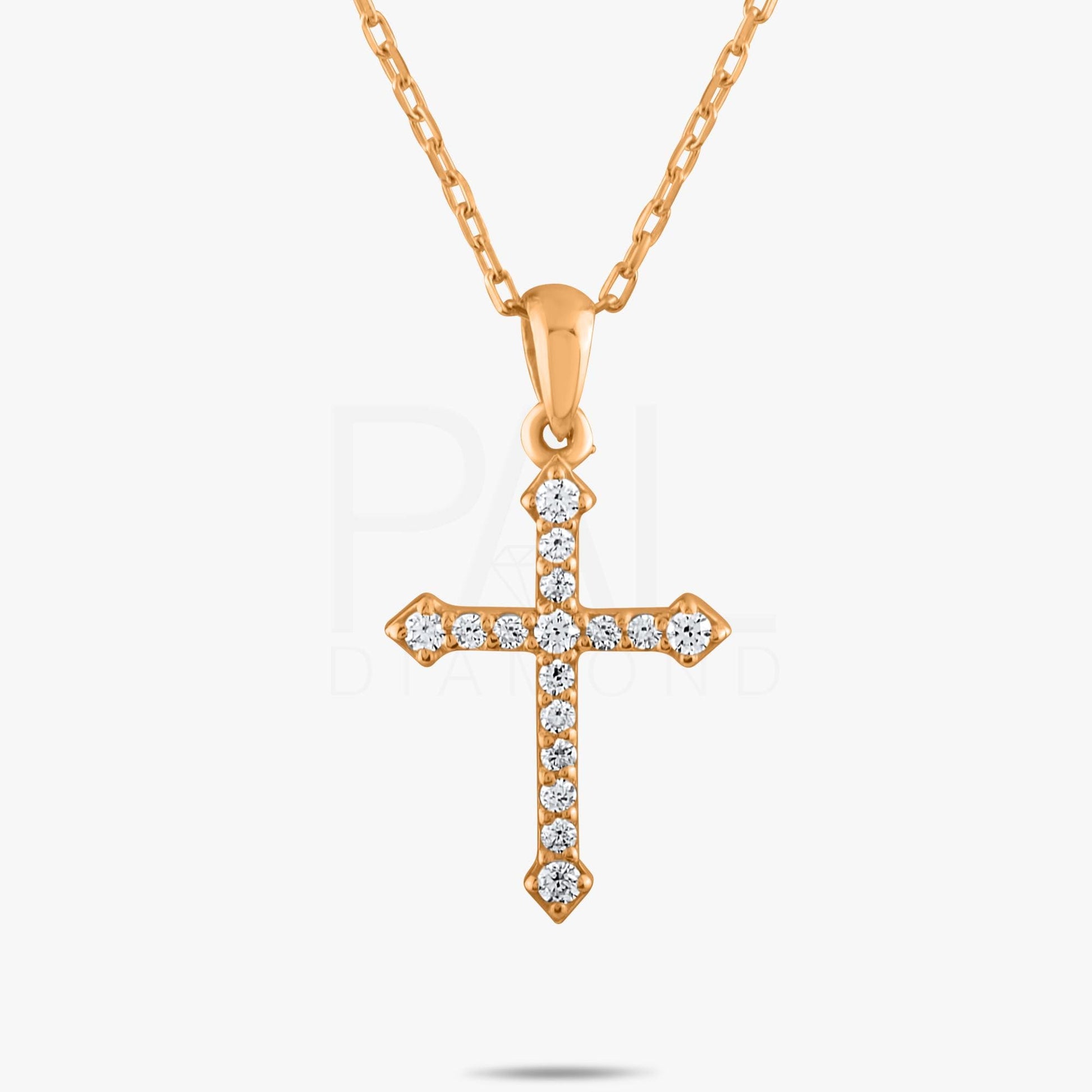 18k Solid Gold Natural Diamond Cross Necklace, 14k Christian Faith Pendant, Religious Diamond Necklace, Dainty Cross Necklace for Women